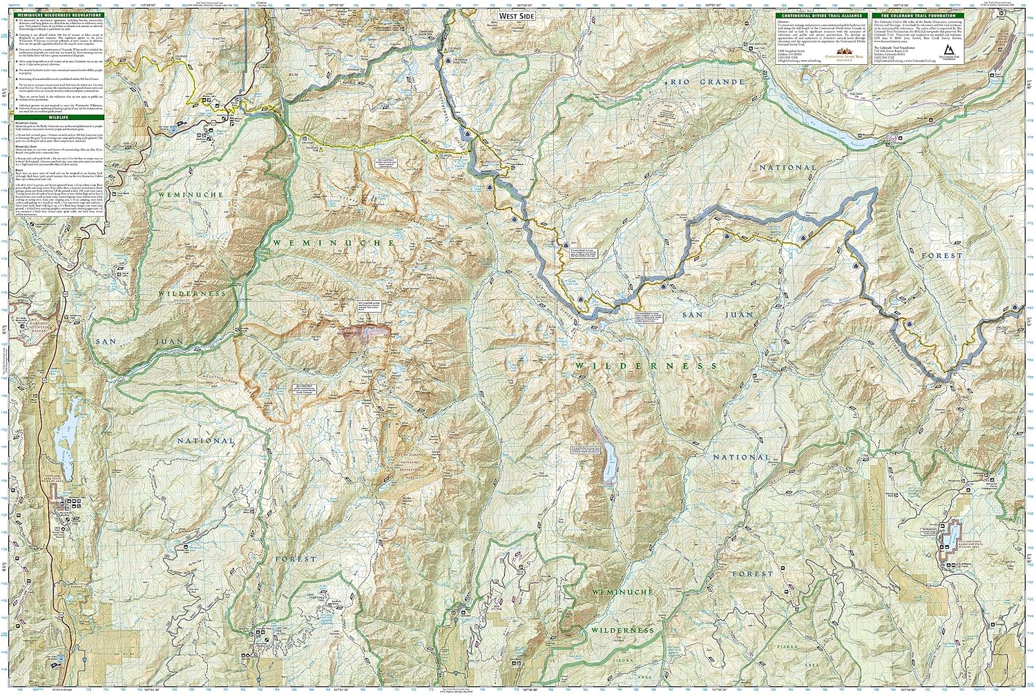 Featuring topographic information, clearly marked trails, campsites, and points of interest, this map is designed to help you navigate and explore the Weminuche Wilderness with ease. Whether you are hiking, camping, fishing, or simply enjoying the natural beauty of the area, this map provides essential information to make your trip memorable and safe.